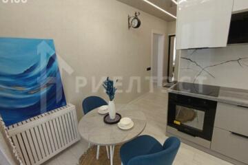 Продаётся стильная, полностью готовая к проживанию квартира с авторским ремонтом и премиальными материалами — никто ранее не жил. Интерьер с продуманной световой концепцией (несколько режимов освещения), что создаёт уют и позволяет менять атмосферу под настроение. Спальня: кровать 160 см с ортопедическим основанием и матрасом, инверторная сплит‑система, телевизор с кабельными каналами, портьеры‑блэкаут. Вместительная гардеробная. Санузел: система «Нептун» (защита от затоплений и автоматическое перекрытие воды), проточный водонагреватель, качественные смесители, душевая система и стиральная машина. Кухня: фильтр питьевой воды, глубокая нержавеющая мойка, встроенный диспенсер для моющего средства, коландер, микроволновка, духовой шкаф, варочная панель, холодильник, обеденная зона. В кухне установлен телевизор с голосовым помощником «Алиса». Лоджия: организован кабинет с письменным столом, комодом и регулируемым электрическим тёплым полом — отличное рабочее место. Безопасность и комфорт: видеонаблюдение, умный домофон, высокоскоростной интернет с роутером. В прихожей — вешалка и обувница. Район: арт‑квартал «Пятый элемент» — авторские муралы и арт‑композиции Андрея Аске. Инфраструктура в шаговой доступности: школа, 2 детских сада, почта, магазины, клиники, аптеки и кафе. Вся мебель и техника остается, очень выгодное предложение, заходи и живи! В квартире никто не жил, ничем не пользовался, все абсолютно новое!