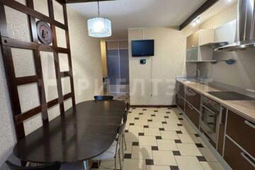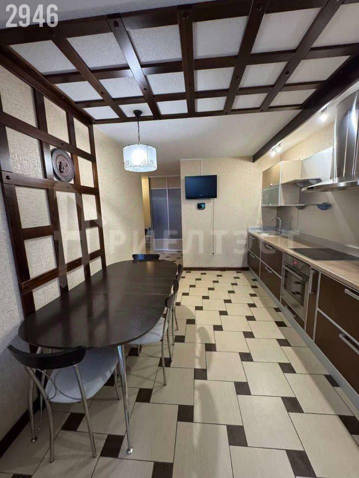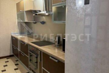 Пpосторная прихожая со встроенным шкафом-купе. Качественная дорогая встроенная кухня с бытовой техникой. Остается холодильник, варочная панель, духовой шкаф, стиральная машина.