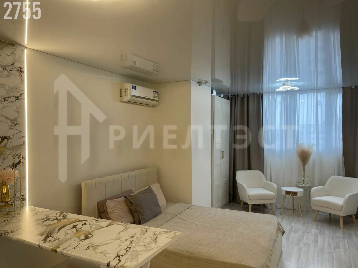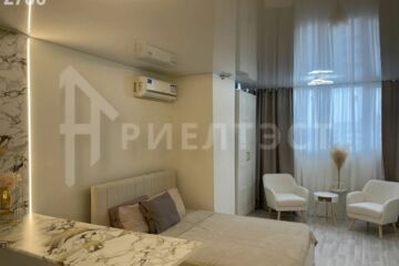 Продается студия на 22 этаже 23 этажного дома в кирпичном новом доме. Просторная светлая студия с новым дизайнерским ремонтом, фото реальные,все что на фото остается - полностью укомплектованая всей мебелью( кровать, места хранения, два комфортных кресла и прочее) и техникой ( холодильник, телевизор, Сплит система, встроенная варочная поверхность и духовой шкаф, стиральная машина) . В квартире много разных вариантов освещения . Из окон открывается вид на Дон, красивые закаты.
